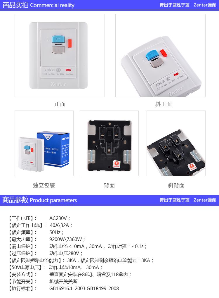 振泰成 柜機(jī)空調(diào)專用 漏電保護(hù)開(kāi)關(guān) ZT8S-32A